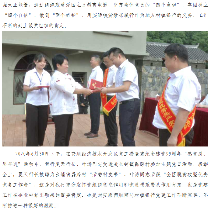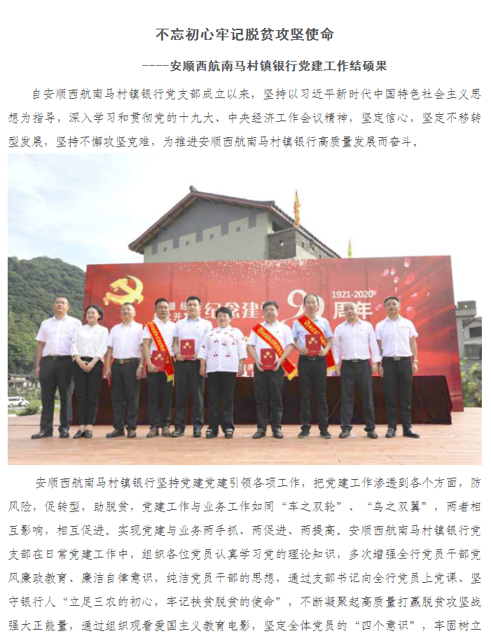 安顺西航南马村镇银行 简 报 2020年第(14)期