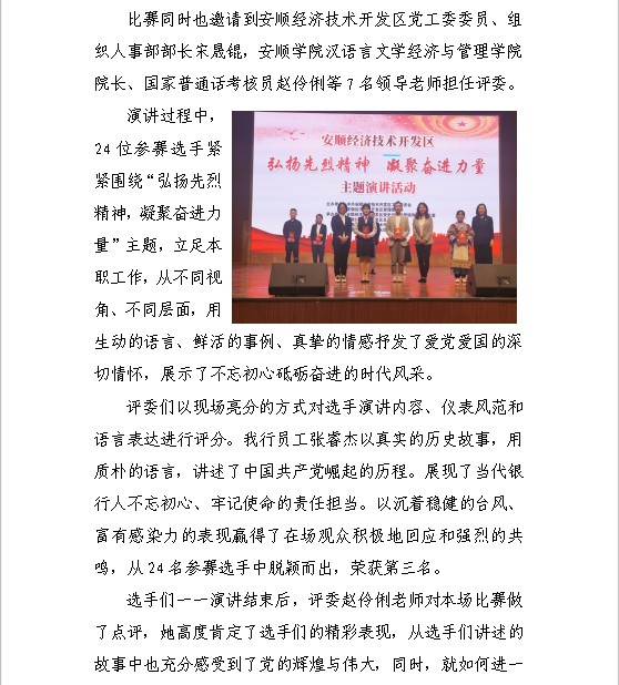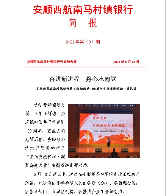 奋进新进程,丹心永向党--安顺西航南马村镇银行员工参加建党100周年主题演讲活动一展风采