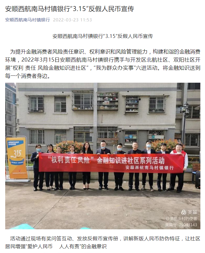 安顺西航南马村镇银行“3.15”反假币人民币宣传