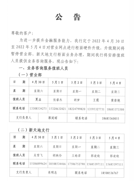 关于营业网点进行柜面硬件升级的公告