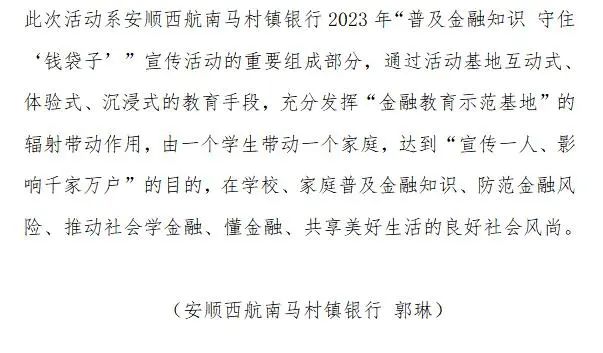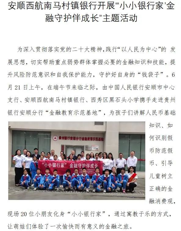 安顺西航南马村镇银行开展'''小小银行家'金融守护伴成长''主题活动