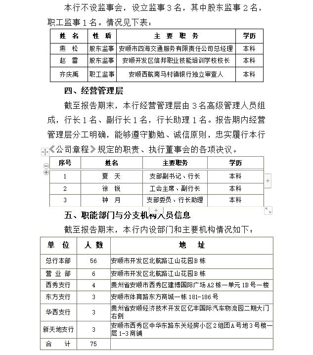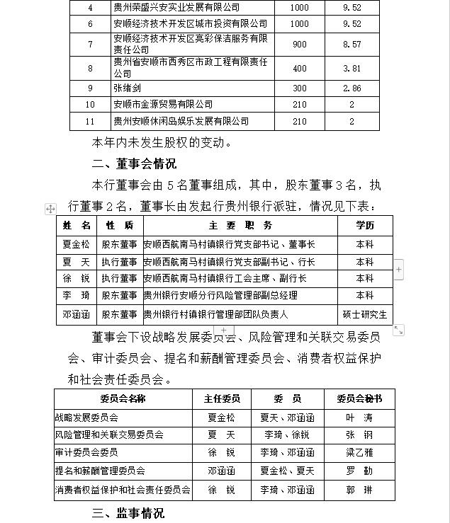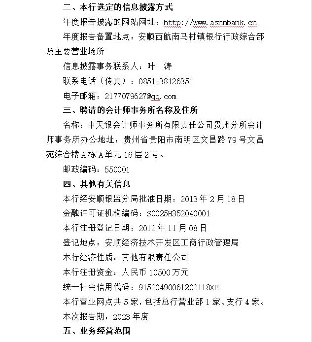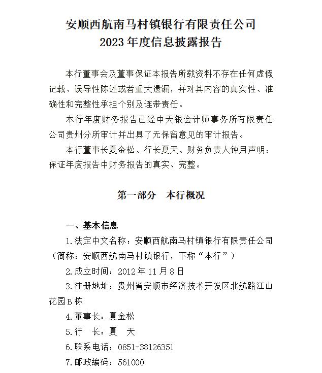 安顺西航南马村镇银行有限责任公司2023年度信息披露报告