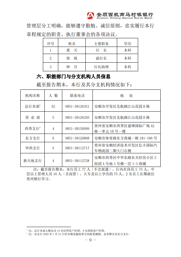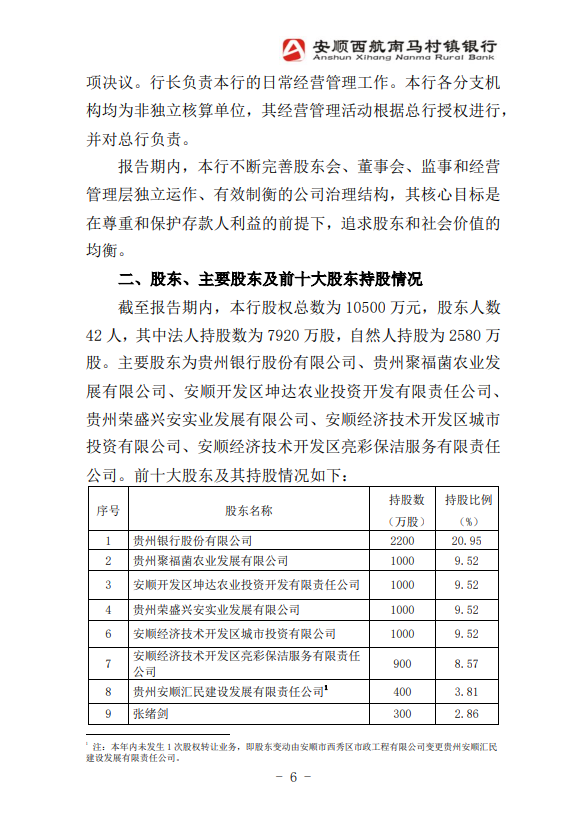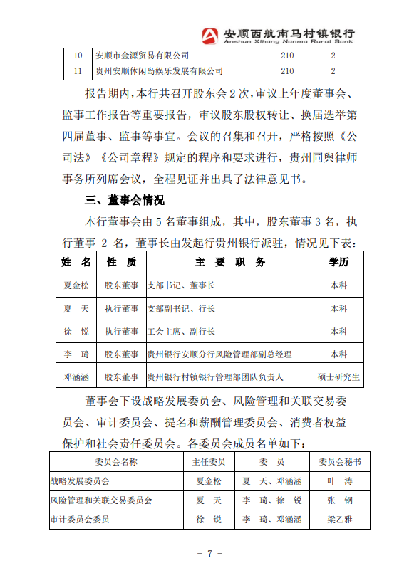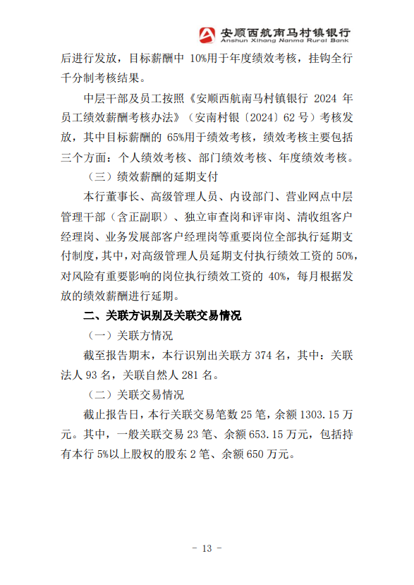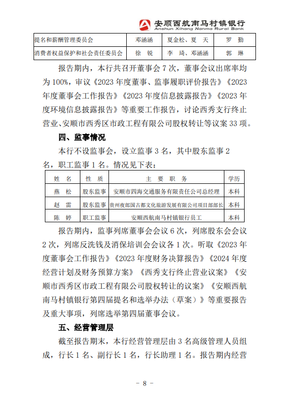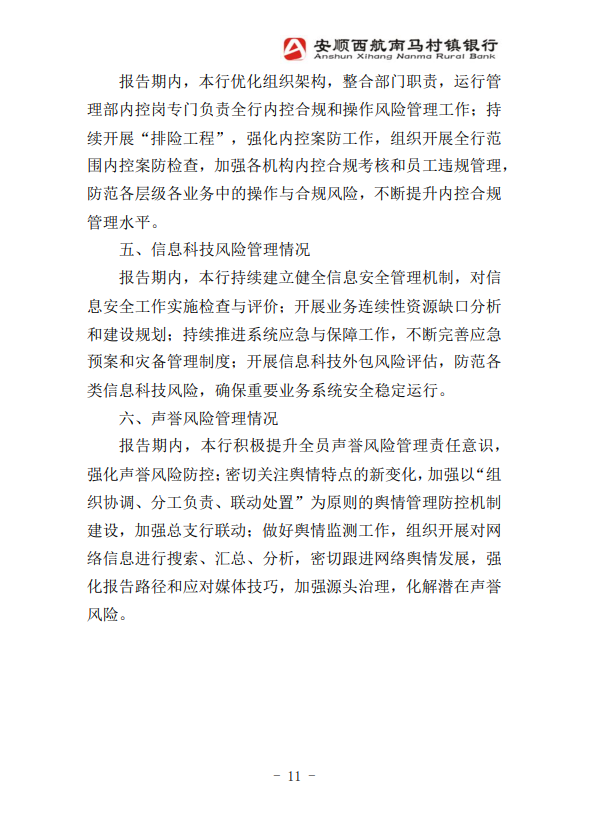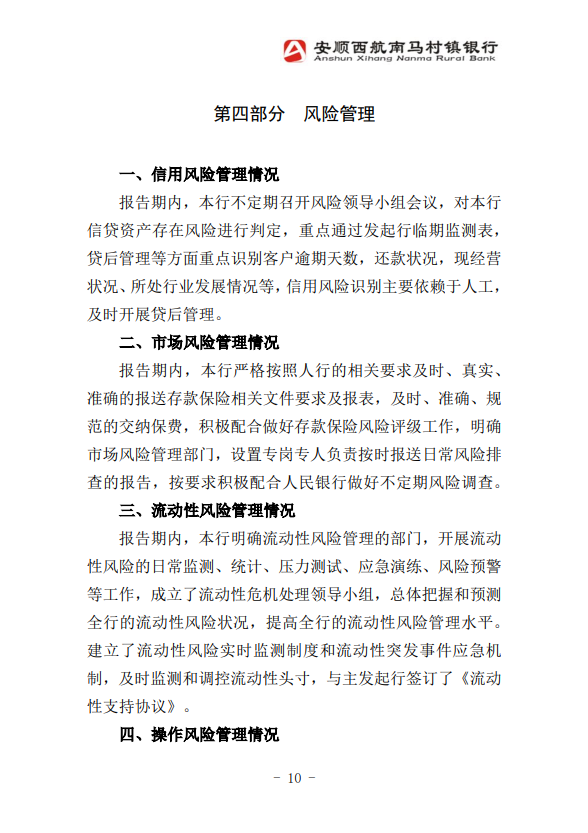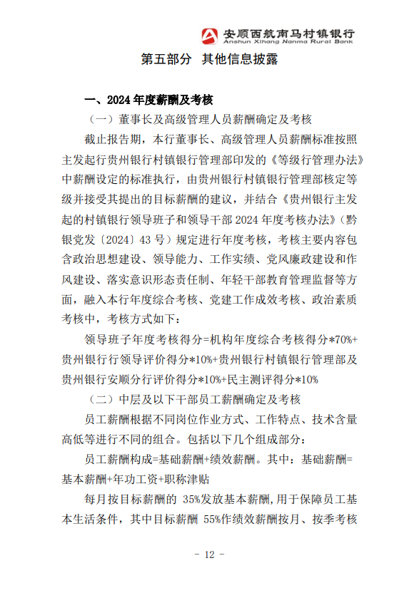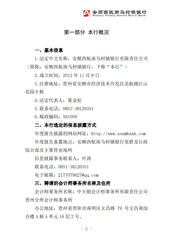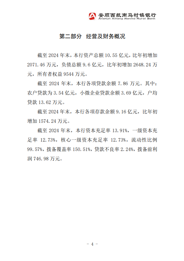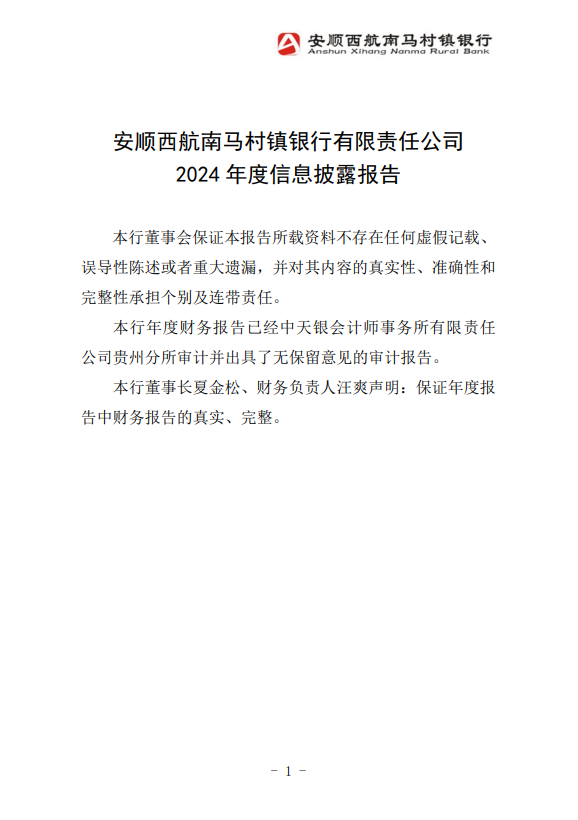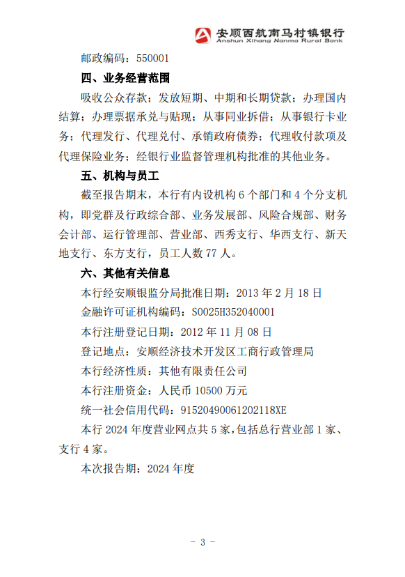 安顺西航南马村镇银行有限责任公司2024年度信息披露报告
