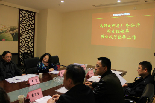 考查中,王强一行在参观安顺西航南马村镇银行公示栏及审阅我行行务公开的相关资料后,分别听取了我行在行务公开民主管理工作中的相关汇报:今年以来,我行认真贯彻落实行务公开制度,把推进行务公开、实施民主管理作为贯彻党的十八大精神、加强党风廉政建设、提高内部管理水平作为几项重点工作来抓。在增强员工主人翁意识,强化员工凝聚力和向心力的同时,确保了各级领导干部政务公开、阳光办事,便于群众监督,将“以人为本”的企业核心价值观进一步深入人心,有力的推动了全行各项工作的健康稳定发展。