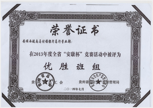 恭喜我行在2013年度全省“安康杯”竞赛活动中被评为优胜班组